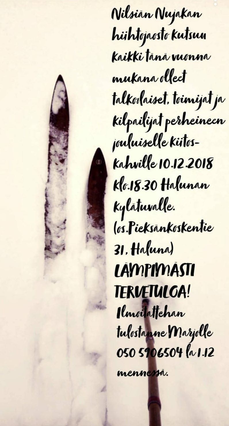 Nilsiän Nujakka järjestää lapsille hiihtokoulun Halssin kentällä maanantai ja torstai iltaisin klo. 18.30-19.30. Hiihtokoulu alkaa maanantaina 28.1. ja jatkuu yhteensä seitsemän kerran ajan päättyen maanantaihin 18.2. Hiihtokoulu on suunnattu 6- 12 vuotiaille lapsille.